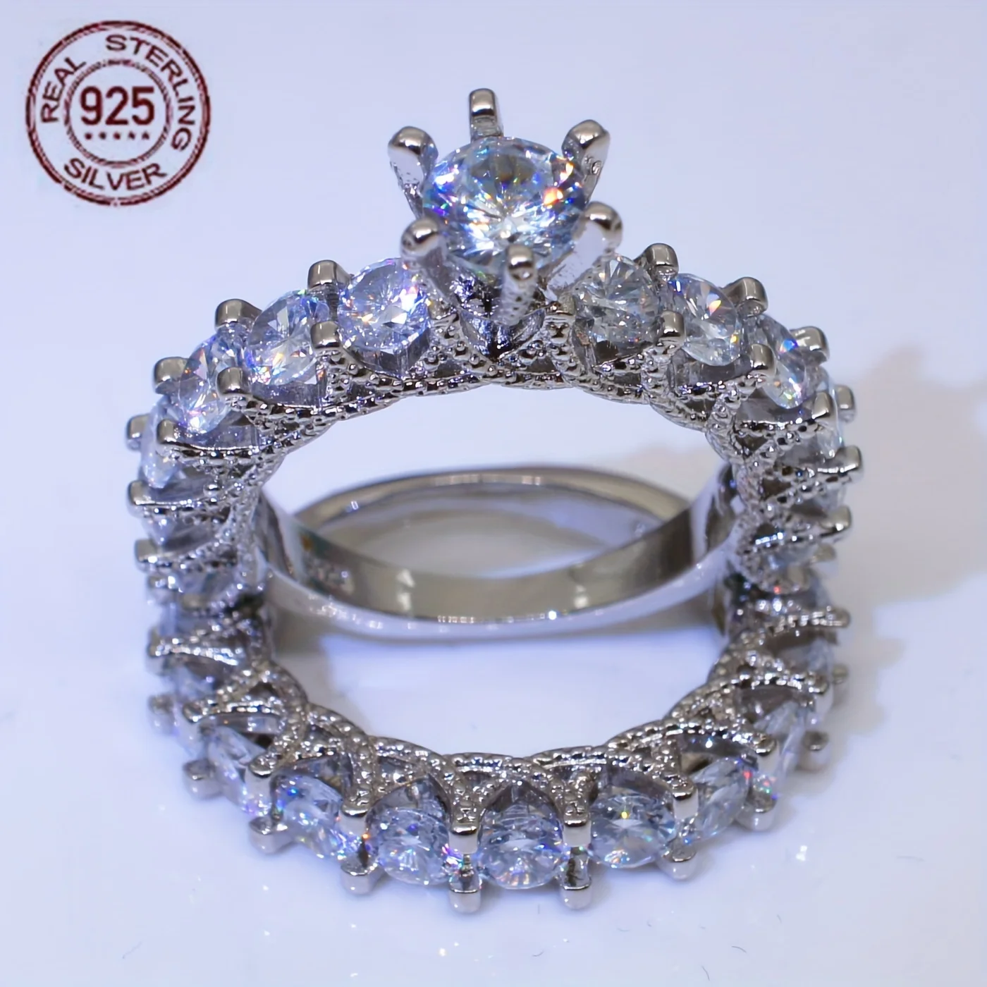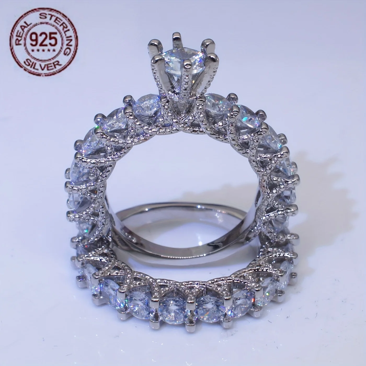 2PCS 925 Sterling Silver AAAAA Zircon Wedding Ring Set Women Engagement