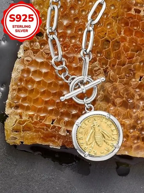 925 Silver 18K Gold Plated Bee Pendant Necklace Women Hoop Charm Gift Box